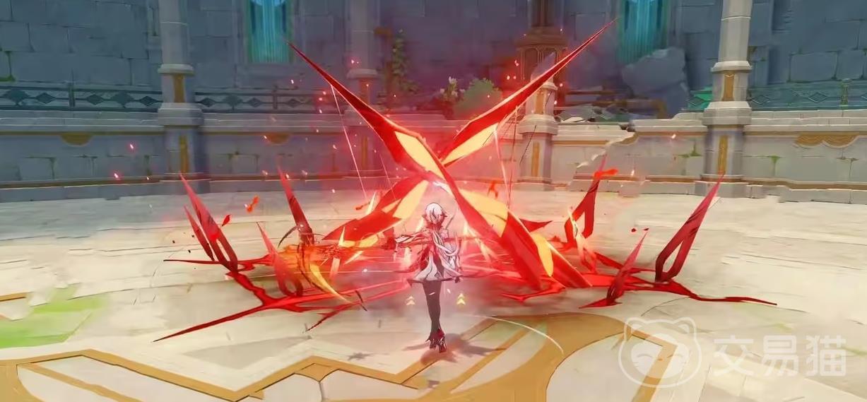 再来看她的元素战技,可以启动遣令厄月血火,从而对周围的多个敌人进行火元素攻击,并且让敌人遭受火元素伤害,同时会将其中一名对手直接突进切断,切造成火元素损伤,这个攻击命中对手的时候,会对其施加血偿勒令,突进切斩进行之后,会将她所有的生命之契都消除,同时来给自己回血,回复量给予生命之契的100%。