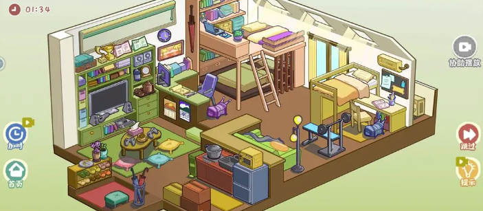 第二关的话是豪华宿舍,在这一关卡当中需要注意图片左下角四个不同颜色的小框需要按照一定顺序去摆放,才能够顺利通关哦,颜色自上而下分别为红绿蓝白,小编也将摆放好的图片放在下方楼,大家可以看一看。