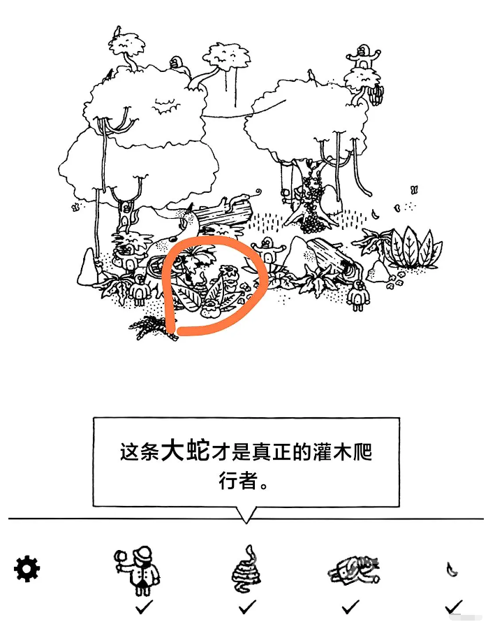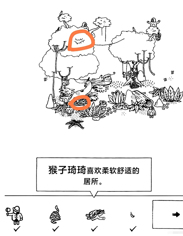 游戏分为不同的章节和关卡,每个关卡都有一系列的目标需要找到。在森林章节中会遇到需要点击的动物和物品,有个比较难的点是点击蛇直到它吐出鸡,或者点击猪旁边的草叶直到挖出松露。