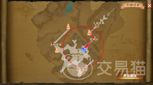 游戏当中的出发点可能需要玩家花费一部分时间,游戏当中设定的出发点是在旧都诺亚中央的大范围之内,其实出发点的范围还是非常小的,玩家控制小左拉这个人物,从祭神台走向诺亚中心即可触发成功。
