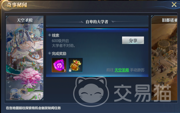 先来说一说自卑的大学者,这项任务的线索是大学者不对劲,在处罚等级上需要玩家达到600级,触发条件非常明确,就是需要玩家在完成天空圣殿这一主线任务后查看邮件就可以触发该秘闻了,在成功触发后玩家回到任务表当中即可。看见该项任务点击自动跟踪就可以开始你的秘闻之旅了。
