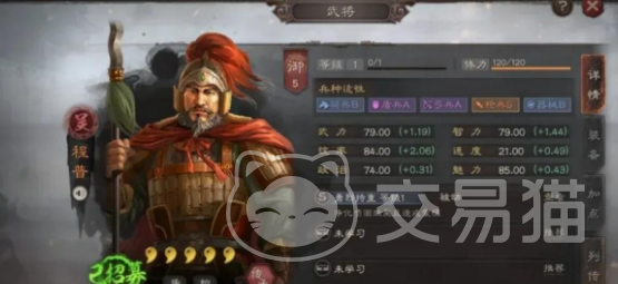 首先进入游戏大家得明白程普的特点,他的战法特别有意思,就是每次挨打的时候,都有一定的机会摆脱那些烦人的负面效果,甚至还有可能让对手“震慑”一下,这控制力简直了。但这也意味着程普得有点“肉”,因为越能抗打,他这战法发动的机会就越大。那我们选兵书的时候,就得朝着让程普更肉、更能抗的方向去选。