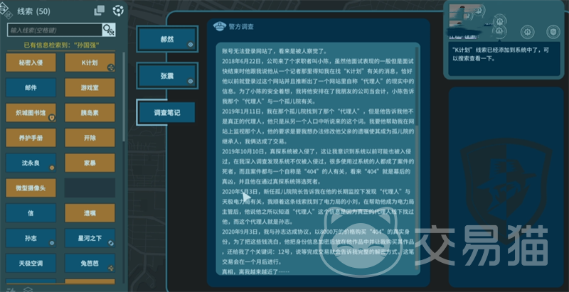 监控调取与系统接入:玩家可以通过调取溪语悦庭的监控来获取案发当天和案发前后的重要信息。进制转换器和运行日志功能是解开案件的关键工具,可以帮助玩家追踪嫌疑人的行动。