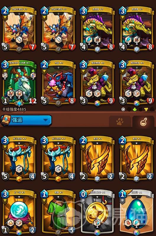 强运卡组在天梯里的胜率一直保持得不错,怪兽牌可选伪鼠虚空兵(两张),疯鳄鱼(两张)、森林守护九色鹿、伪鼠、赌圣鳄鱼(2张),装备牌可选战斗宝冠(两张)、金冠(两张)、占卜球、便服、铁匠山之心、龙之泪。整套卡组都不难获取,森林守护九色鹿可替换成国王或是其它有治疗能力的牌。