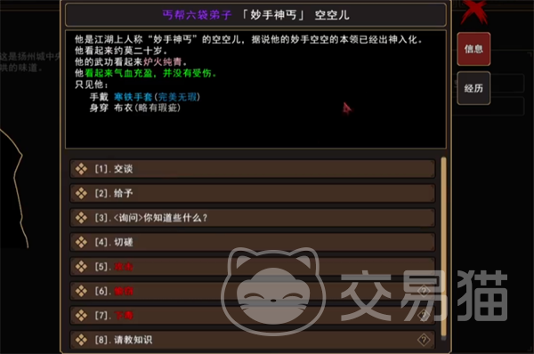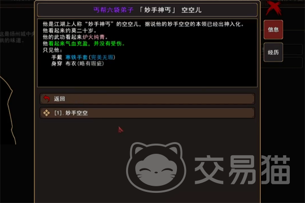 玩家需要找到丐帮的空空儿,这位角色通常出现在扬州城中心大街的大树下。与他交谈并提升好感度是获得妙手空空的前提。当空空儿的好感度达到60%时,玩家就有机会从他那里学到这项技能。但这还不够,玩家还需要保持正邪值在正面,这样才能确保空空儿愿意传授技能。