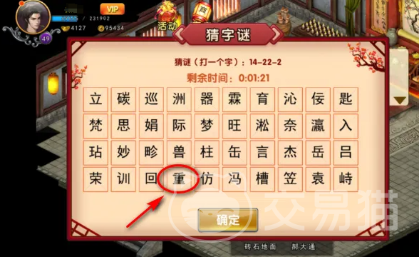 然后,就是一系列的谜题等着你来解了。首先是第一个谜题,14-22-2对应的是“重”这个字。接下来第二个谜题,13-20-2的答案是“阳”。别停,还有第三个谜题13-36-3,它的解是“有”。最后一个谜题稍微有点难,15-31-3对应的是“险”这个字。