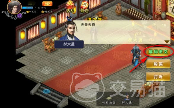 当你的悟性终于攒够了100点,接下来就该动身前往全真教的纯阳殿了。到了那儿大家找郝大通前辈搭个话。跟他聊完之后,别忘了选个重要的选项——“解码密文”。