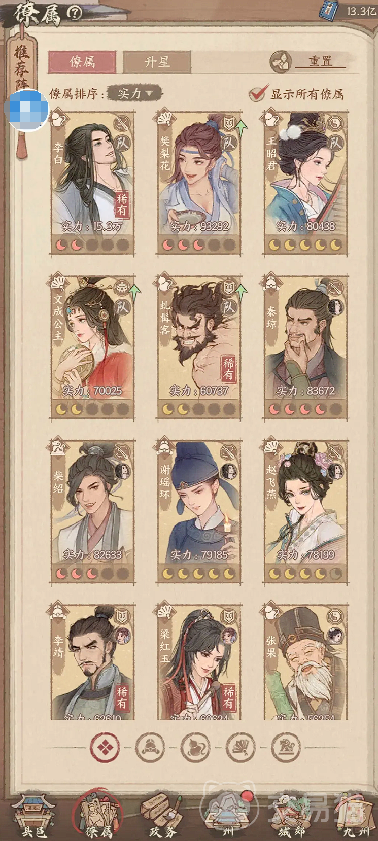 而且除了羁绊效果,势力加成也是不可忽视的。在选择僚属时,尽量选择相同势力的角色上阵,这样可以获得势力加成,增强队伍的整体实力。可以选择文成公主作为辅助,她不仅可以为团队提供治疗和增益效果,还能与李白同势力,获得额外的势力加成。