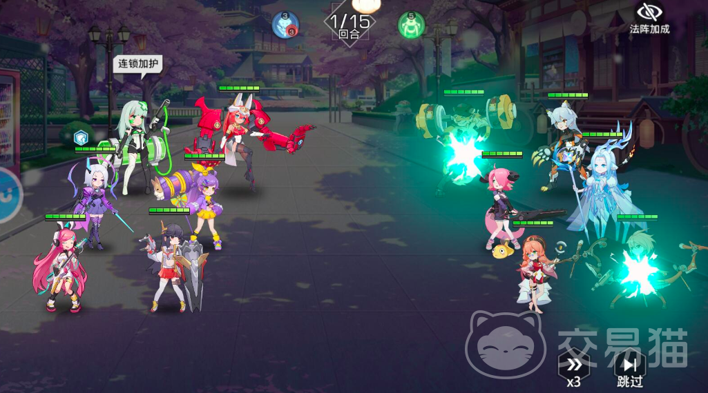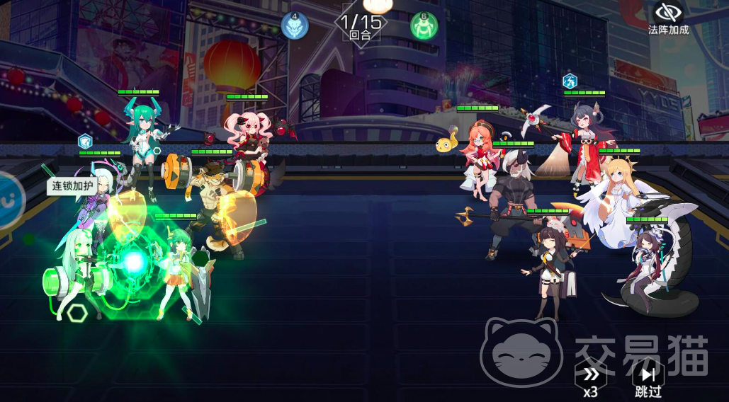 在阵容上玩家可以选择千手,小乔,米迦勒,血小板,神乐以及幻刺这六个角色在游戏当中,神鹿和血小板可以放在后排,血小板通过他的连锁加护可以将敌对位的前排单位和后排单位进行链接,并大大增加伤害值。并辅助换次的穿云箭和剑雨。而千手和小乔,米迦勒作为前排主力。可以提供更强的暴击,暴击,抵抗以及物伤减免效果,免疫掉40%的生命伤害值。