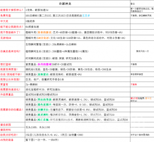 目前小编也非常喜欢神龙许愿这个玩法并且将相应的奖励览表放在了下方,玩家在游戏当中可以通过参与抽奖探索或者是博物馆勋章兑换以及灰烬模式来解锁更多的龙珠,在玩家献祭了五次龙珠之后就会有真龙出现,真龙出现以后,玩家可以领取到2000家的白蝌蚪,5000家的黑蝌蚪以及一些低等的龙晶等相关奖励物品。每一次的成功献祭可以让玩家有机会解锁更高等级的奖励,帮助玩家在游戏当中过关斩将,迅速完成各种目标任务,感兴趣的小伙伴们可以赶紧尝试这种玩法。