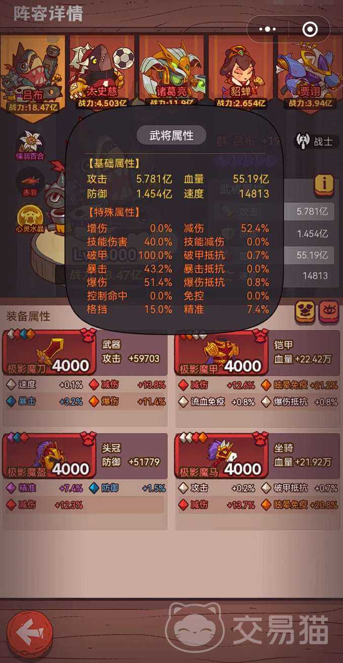 那先要构建这样的队伍的话,就一定要先有一个能够吸收伤害的坦克角色放在1号位,小编还是推荐最为保险的吕布,因为他不仅能够吸收伤害,还能够提供足够的输出,攻防两端都有亮眼表现,能为后排增加容错。