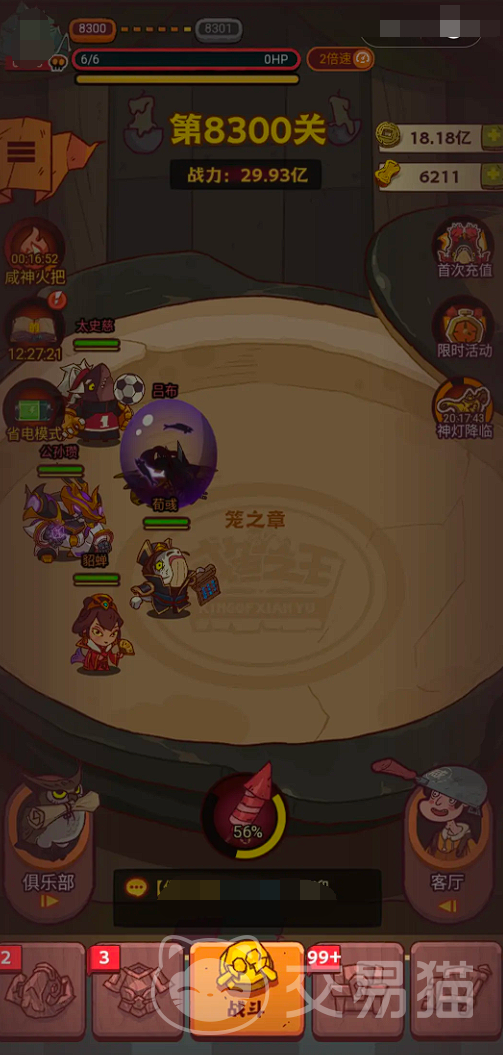 咸鱼之王游戏中,8300关的畏尾鱼是许多玩家非常头疼的一个难度关卡,那么咸鱼之王8300关畏尾鱼怎么过?其实这个BOSS攻高血厚,普通攻击会针对1号位角色,并且随着时间推移伤害会逐渐增加。它的大招是范围攻击伤害极高。但其实大家不用担心只要构建一个能够减少BOSS怒气,从而限制其使用大招的队伍,就可以保证队伍中的主力角色能够承受BOSS的持续伤害。