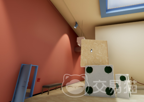 随后小伙伴们会看到一个大方块,这个大方块可以进行放大,放大之后大家将其移动到墙面就可以创造出一条路线了,在往上走后大家会看到一个奶酪道具,将其扔向墙面就会找到一个灭火器并且解锁第三个成就,最后在完成这一系列的挑战后,小伙伴们会看到一束蓝光,走过去就可以通关了。