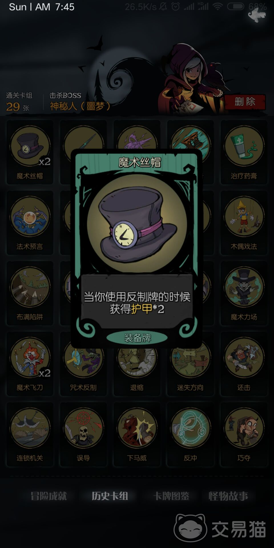 接下来是“反制流”,反制流要求小伙伴们具备判断和布置反制牌的能力,建议大家带上“魔术丝帽”和“银色披风”等道具,攻击力可以带上诡计舞台剧,像“法力结界”和“木偶戏法”等的牌也可以带上,可以获取更多的反制牌。