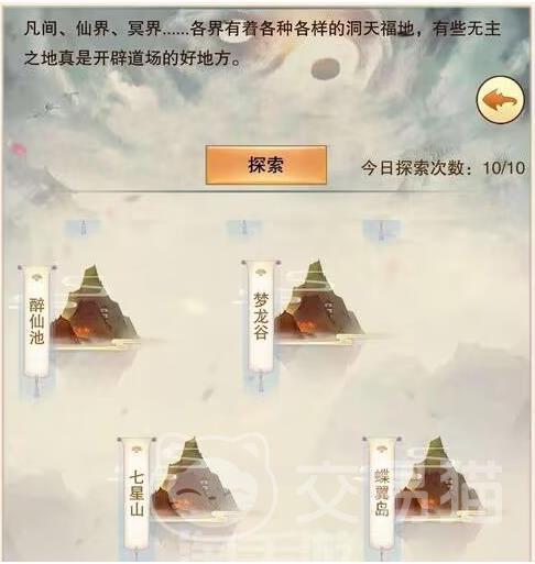 洞天福地在仙缘的主界面应该都能找到,里面每天可以进去探索十次,所以基本俩三天的样子可以探索完一个,里面还有个特殊的《南海》不过这个阶段还不能进。洞虚期也可以去矿脉采矿,虽然对洞虚期用处不是很大但每一种颜色的石头都留一千左右是最好的,