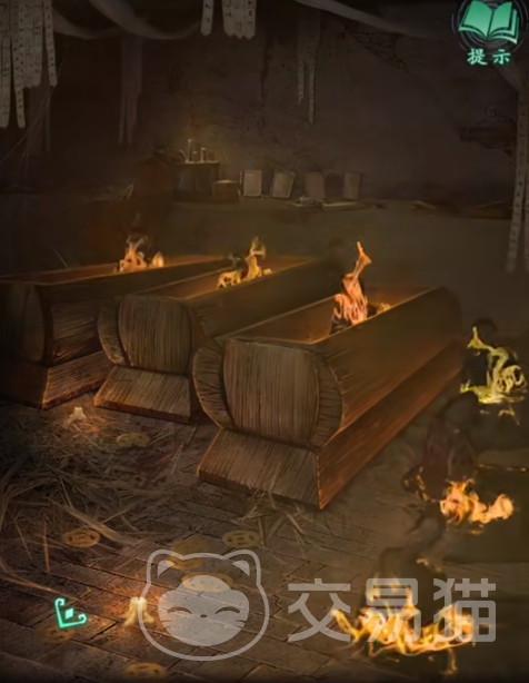 得到这个关键的信息之后,玩家就要前往左边的摆放棺材的房间。要根据玩家刚刚获得的线索的规律进行敲打棺材,棺材就会打开。 首先根据福福寿福禄寿的顺序来点击棺材,具体操作的方法是最右侧的棺材点击两次中间点击一次,最右侧的棺材点击一次,最左侧的棺材点击一次,最中间的棺材再点一次。