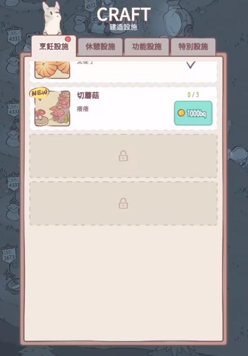 若要想进行切蘑菇的建造,大伙需要先在休憩设施里找到街头表演,然后将其建造好,这样才能完成解锁切蘑菇的前置建造条件。除此之外,建造切蘑菇需要用到1000bq的金币,若玩家的金币不是很足,则可通过升级已建造好的设施,来让金币积累地速度变快。