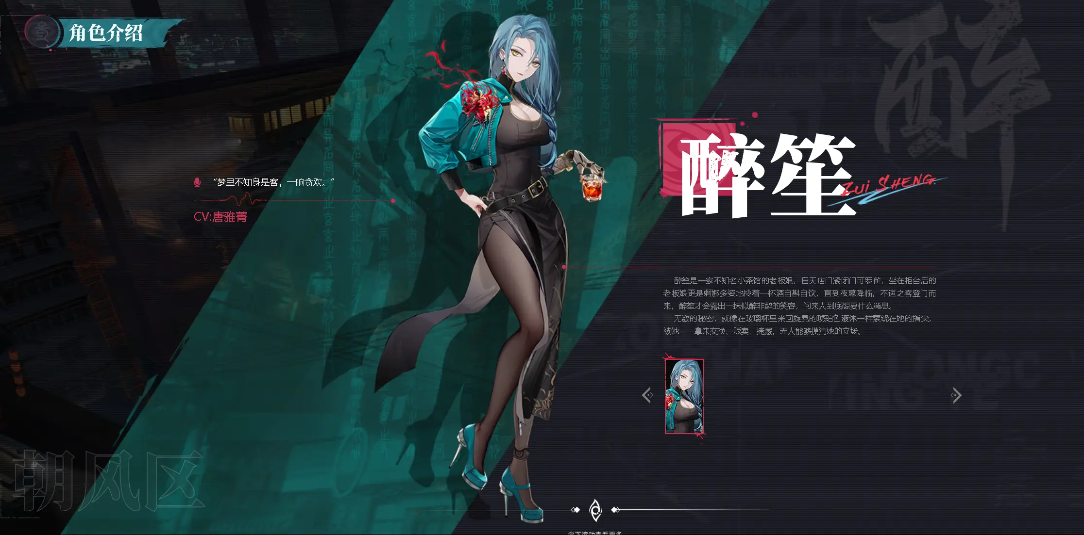 醉笙是其中的女生主角之一,她拥有着上海风情,外形非常的美丽,她的身份是一名间谍,主要战斗方式是远程输出,人设非常的性感与可爱,喜欢远程输出的小伙伴可以多多了解一下醉笙哦。