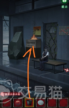 在输入数字之后直接拨打电话会发现左边的盒子已经进入到燃烧的状态,只需要点击正处燃烧状态的盒子,可以把所有的图案按照顺序的方式连接起来,接着玩家可以得到空水桶还有黑蜡笔。进入到候车厅之后,应该及时把拼图上面的颜色加以改变涂层红色的月亮,黑色的海浪,顺利的拿到钥匙。