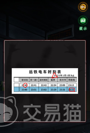 别忘记要把地上的撬棍拿起来,玩家好不容易等到电车,却发现大门已经被锁,无奈之下就只能重新的回到候车厅。可以根据图案的形状,还有数字来得到密码。回到电车这边就可以迅速的用密码直接解开锁,别忘记要拿起车厢里面的苹果进入到下一个剧情。