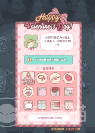 情人节礼物在出现之后必须要尽快的确认,否则没有办法获取。情人节的礼物以随机的方式登场,里面会包括多种不一样的小礼物。在打开情人节礼物之后,可以看到以下的小清单,玩家就可以根据实际情况来装饰。