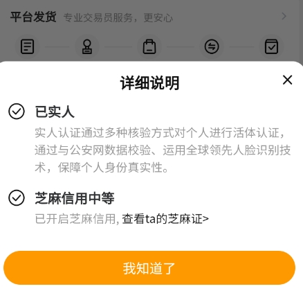此外,平台上的交易信息都是经过了严格审核的,当卖家发布商品时,平台会进行账号相关的验证,确保账号信息、装备和道具等的真实无误,之后才会将账号展示给买家去购买,同时平台还要求用户必须通过支付宝的实名认证和芝麻信用分的认证,以保证交易双方信息的可靠性。