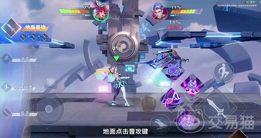 当处于空中状态时,普攻也有三种不同的模式。跳跃后点击普攻键攻击前方敌人,普攻键上滑则会抛出恶魔炸弹造成伤害,如果是下滑则是往下俯冲攻击敌人。滑动并按住普攻键会积蓄力量,释放出恶魔炸弹造成伤害,当蓄力满之后,炸弹会强化成为电子熊,是一个伤害极高且弹道速度很快的攻击手段。以上仅仅是普攻带来的效果,还有其他技能,而安琪拉真正的乐趣都在后续几个技能中。