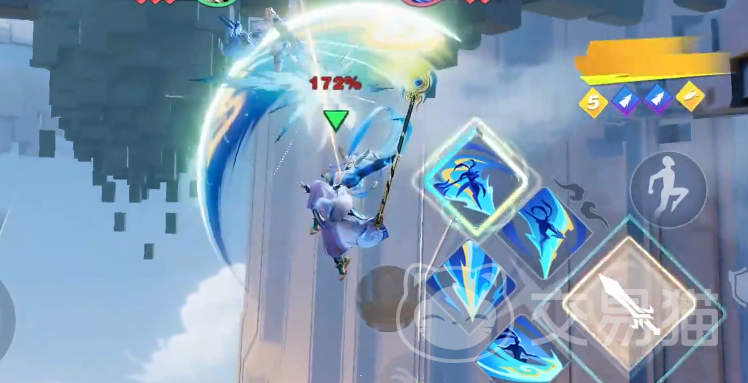 2技能跳到空中然后挥动长戟直插地面,可以击飞路径上的敌人,跳得越高造成的伤害也越多,当然跳得高给敌人的反应的机会也更多。2技能下坠很快,当被敌人打飞的时候可以腾空跳然后用2技能快速回场,但只要注意落点有平台,别直接冲出去了。3技能变成旋风向着斜上方旋转击飞敌人,用摇杆可以改变旋风卷的方向。