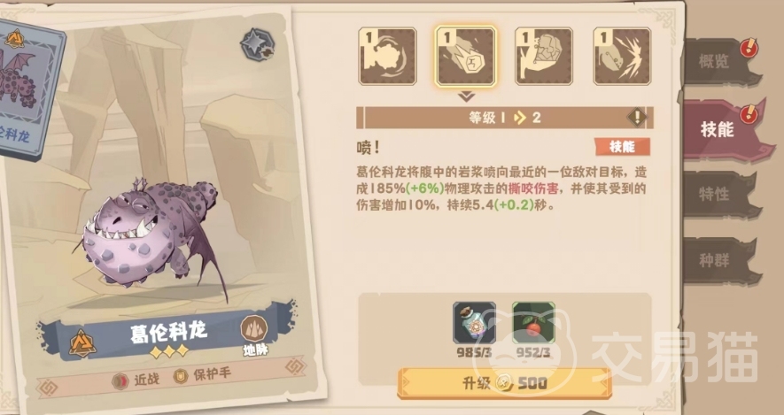 很多朋友问驯龙高手旅程葛伦科龙怎么样,葛伦科龙是一只上下颚都很大的龙,本身长相也很有地脉元素的风格,并且属性和技能也都设计的比较有特点,那么接下来小编就给各位介绍一下它的具体强度,其强度主要得从属性和技能来进行分析,感兴趣的话可以和小编一起来看看哦!