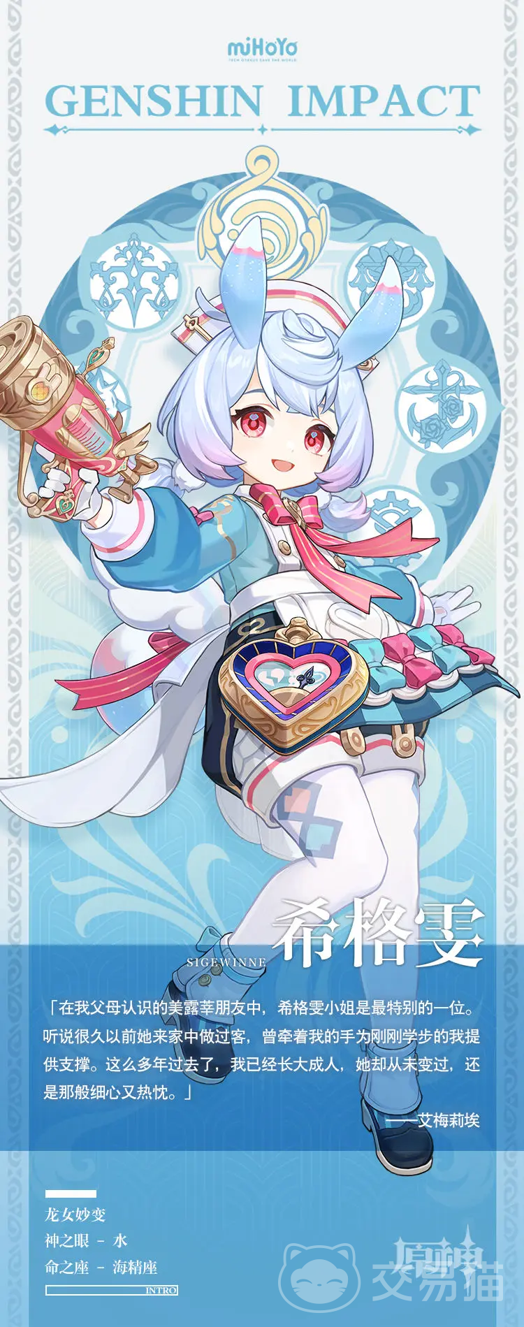 原神希格雯的技能情况大致就是以上叙述的这些了,不过由于角色还未正式上线,所以对于她的技能情况也只是一种预测,可能在此期间还会有改动,小伙伴们还是要以她上线为准,但是不出意外的话她的身份应该是离不开水奶了的。