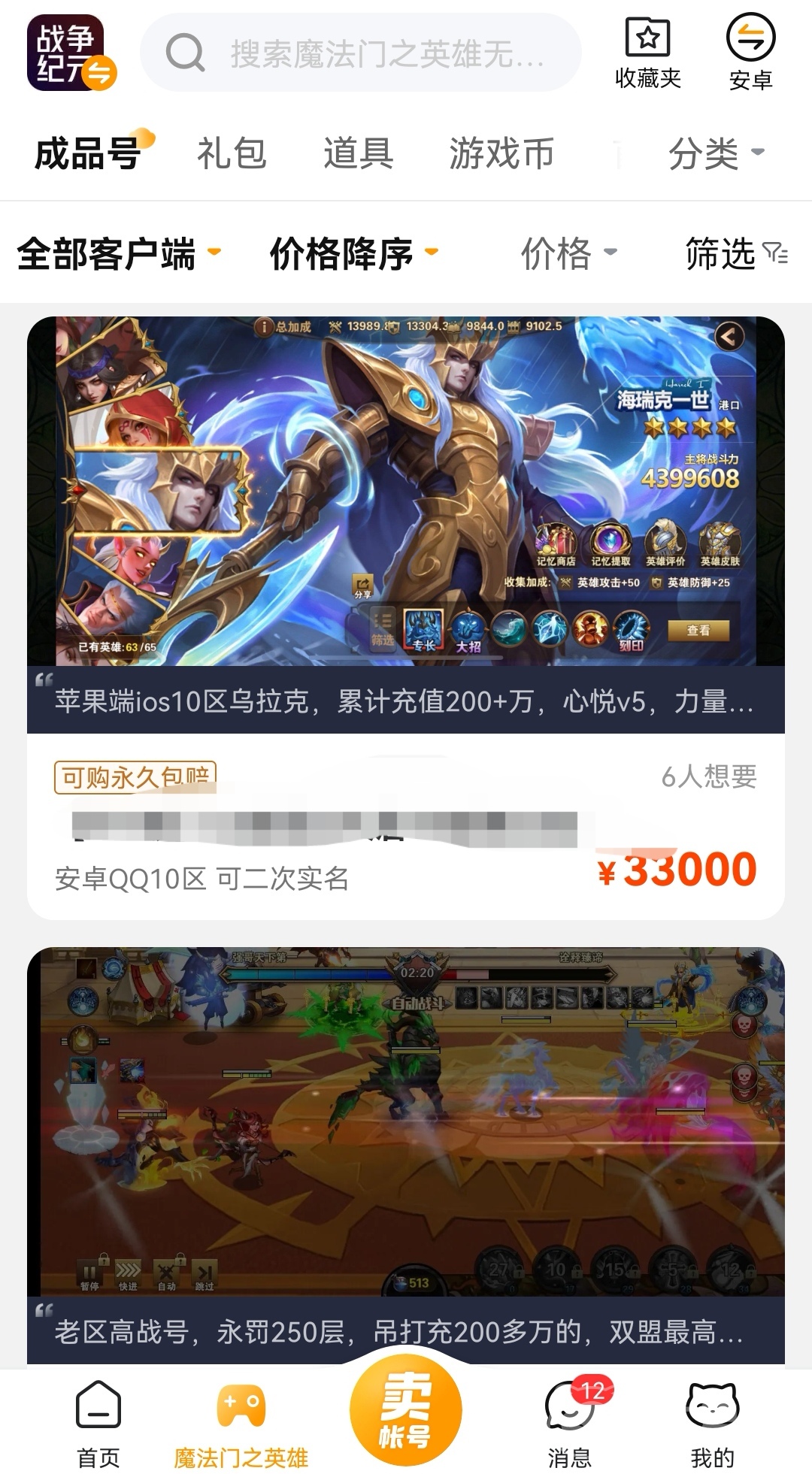 因为大多数小伙伴并没有很多精力,他们不知道账号价格大概是什么范围,所以小编建议大家在找到魔法门之英雄无敌战争纪元游戏专区之后,看看其他卖家给出的价格大概是什么样的,就需要借助平台的排序功能将所有账号链接价格降序和价格升序的方式排列,得到范围大概是260元到33000元,然后再根据每个账号当中的装备资源和等级等进行合理分析,这样大家也不会购买到价格过高或者是没有什么装备资源的账号了。