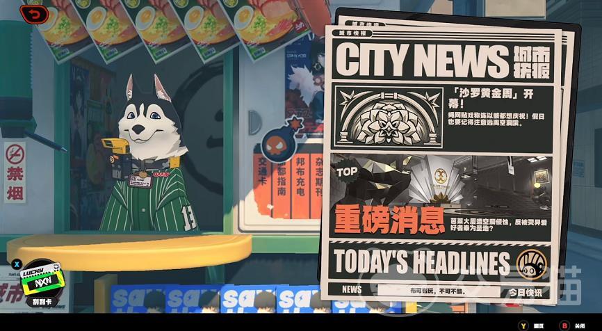 此外,绝区零在城区的设计上也下了很多的苦功,主角兄妹所在六分街如同现实里的社区一样,不仅设有很多的店铺,还有来来往往的行人,而玩家也可在这里体验很多有趣的玩法,例如前往狗狗驻守的报刊亭看当天新闻,前往街机厅体验小游戏,或是去吃碗拉面增强战斗能力等,甚至还能在街道各个角落寻找隐藏起来的彩蛋元素,可互动的内容非常多。