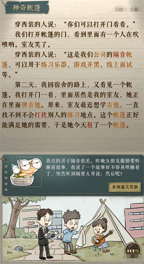 “神奇帐篷”关卡则是一个充满想象力的谜题。在这里,玩家需要将现实世界的逻辑放在一边,跟随游戏的引导进入一个奇幻的世界。解谜的关键在于理解故事中的隐喻。如下图所示: