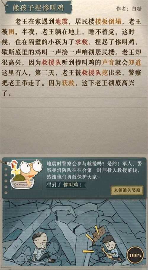而“熊孩子捏惨叫鸡”关卡,则是一个测试玩家应变能力的关卡。玩家需要在有限的线索中找到解决问题的方法。如下图所示: