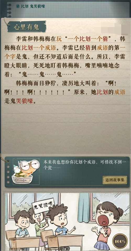 接下来是“心里有鬼”关卡,这个关卡的挑战在于理解人物的心理活动。玩家需要从人物的言行中寻找矛盾点,这些矛盾点将引导玩家找到解谜的线索。如下图所示: