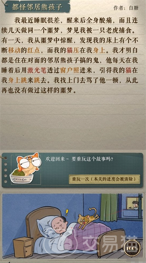 “都怪邻居熊孩子”关卡则是一个充满幽默和讽刺的关卡。在这里玩家需要理解人物的性格和行为模式,这些将是解谜的关键。如下图所示: