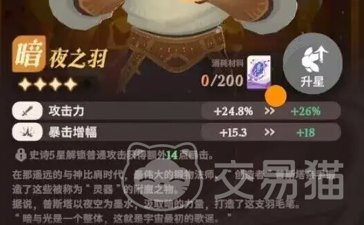 暗夜之羽:在解锁灵器系统之后,立马就可以获得一个一星的灵器,从某一种意义上来看,建议还是选择多投资赤羽。