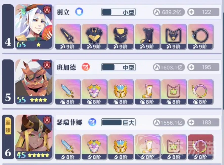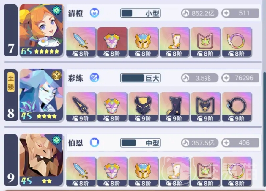 最后推荐的完全体九人阵容则是“达摩+黑德斯+卡洛斯+羽立+班家德+瑟瑞菲娜+彩练+清橙+伯恩”。