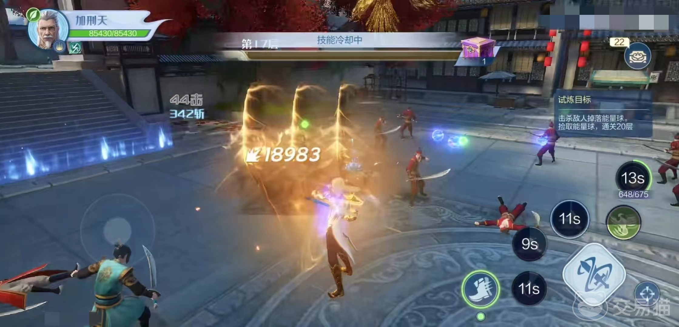加刑天使用的是一把长剑,能够对敌人造成近战输出。自身普攻可以对周围目标造成击飞伤害,在技能使用之后会朝前方发射出三道金色光芒刀气,造成路径上所有敌人伤害和击飞,同时技能还带有护盾和减伤效果,这样使其在众多目标围攻中依然可以屹立不倒。