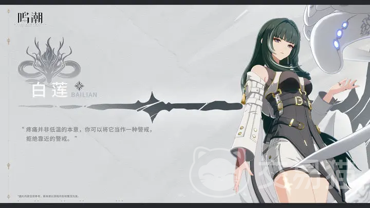 白莲这个角色从立绘来看,就是清冷的女神一枚,属于皇龙阵营角色,角色定位是冷凝属性,而她的异能力”忧昙伴生”也确实是比较符合角色形象设定的。白莲用自身的残响作为养料,可以召唤出和自身一体共生的残响生物,也就是“忧昙”。忧昙是白莲的期许,拥有治愈甚至复生的能力。