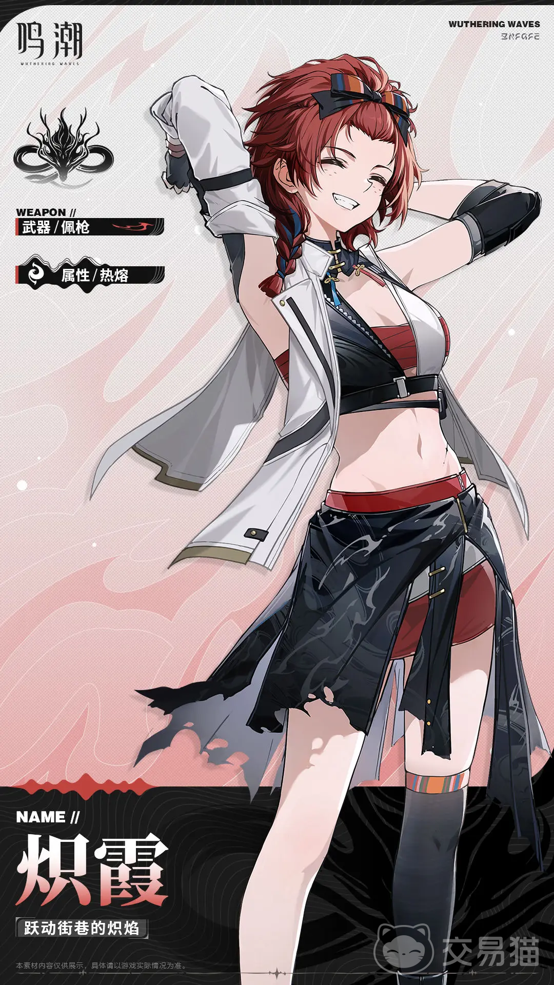 炽霞同样是属于皇龙势力的一个五星角色,她是热熔属性共鸣者,利用手枪就能对敌人造成多段的射击伤害,而共鸣技更是可以对敌人积累热压弹来增强伤害。她的异能力是”炽焰跃火”,可以利用激烈的子弹命中对手。先来看她的普通攻击:给你两梭子,普攻的时候分为四段进行,都是纯枪械射击,第四段射击的时候会对敌人造成热熔伤害。