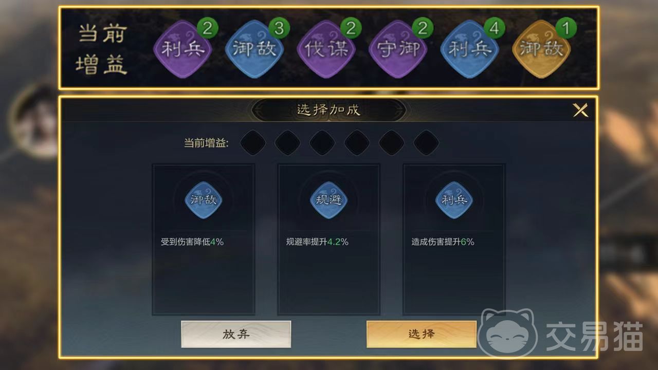 在远征过程中,大家可以选择不同增益状态,一共有6种可选项,相同名字和品质状态可以叠加,但是只能获得6种,一旦超过6种,就只能替换掉,当前任意一个。可以选择的增益主要包括御敌,守御,利兵等不同分类,御敌可以降低自身受到的伤害,规避能够提高闪避几率,利兵则是提高造成的伤害,可以根据自己队伍实际情况去选择。例如有些玩家走的是攻击路线,那么就应该优先选利兵,有些玩家走的是肉盾路线,那么优先就提选择御敌或者是规避。