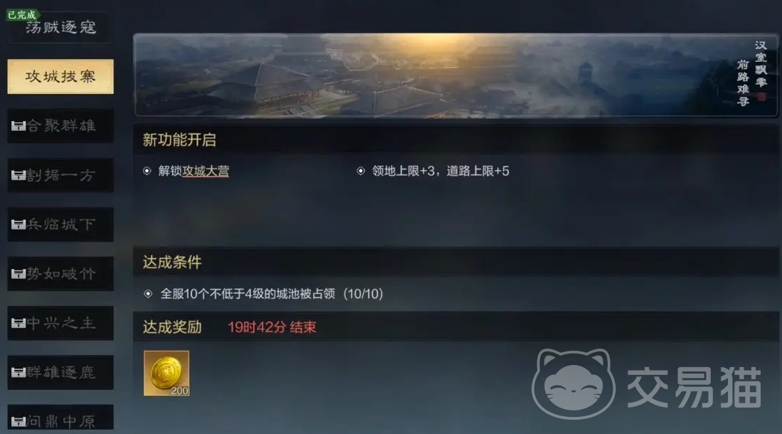 解锁条件比较简单,玩家达到攻城拔寨篇即可解锁攻城大营。