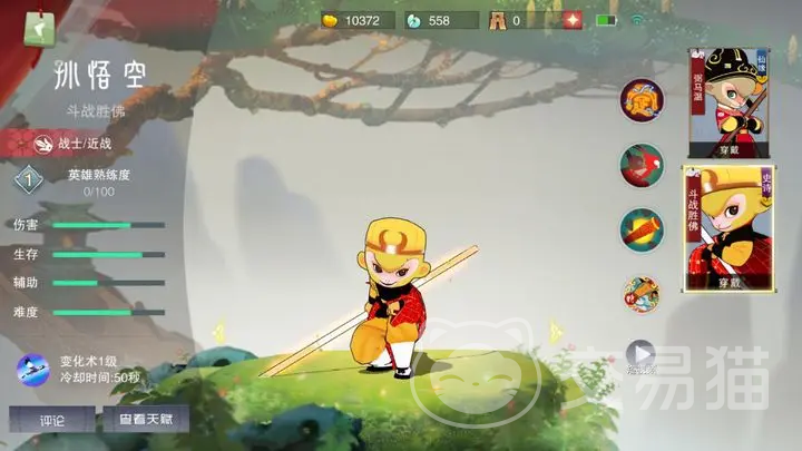 技能二“大圣冲击”是一个有效的位移技能,可以朝着指定的方向进行冲刺,并且留下自己的分身,分身存在的时候,如果再次释放的话,那么分身会飞回来,不然的话过段时间分身就会飞回到本体当中。大招是”定身术”,这是一个群控类的技能,可以让附近的敌人直接定住,受到任何伤害的时候定身术就解除了,不过对手会受到一次额外的攻击伤害。