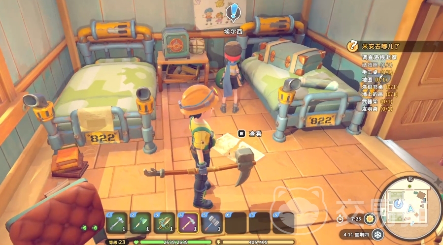 后续就是在床头去调查,画中间和左上角的花朵能够得到自己想要的线索,而隔壁房间内的手工桌上也能查阅内容,通过线索大家就能知道原来洛根在制作炸弹个。