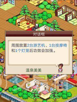 第2个来看一下舒缓之泉,要想激活,在温泉的周围可以放一个灯笼,一台按摩椅,还有两台游艺机。在准备好这些设备之后,就可以迅速的激活。