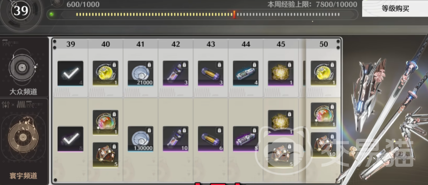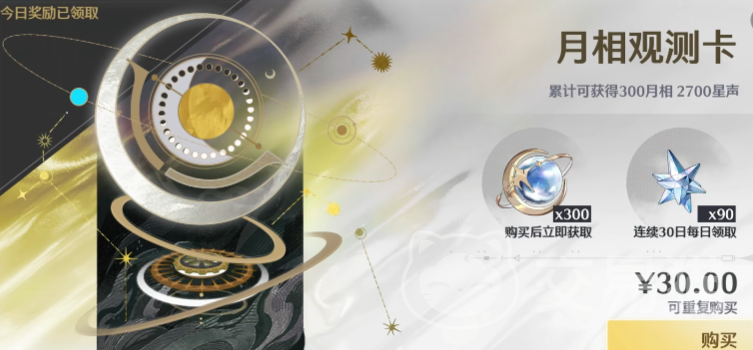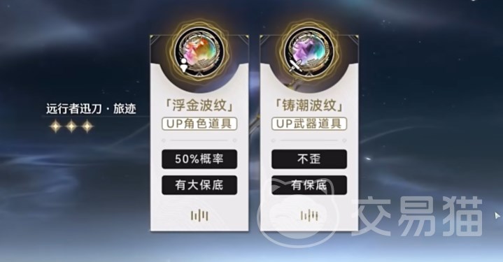 抽卡道具名为“星声”,日常最多60个,小月卡每天能有90个,160星声换1个“唤声涡纹”,涡纹可以抽常驻角色池和武器池,80抽保底,如果不氪金买月卡,抽到心仪角色的进度就会明显变慢,这个游戏里的常驻武器池可以定向,这点还是挺不错的。