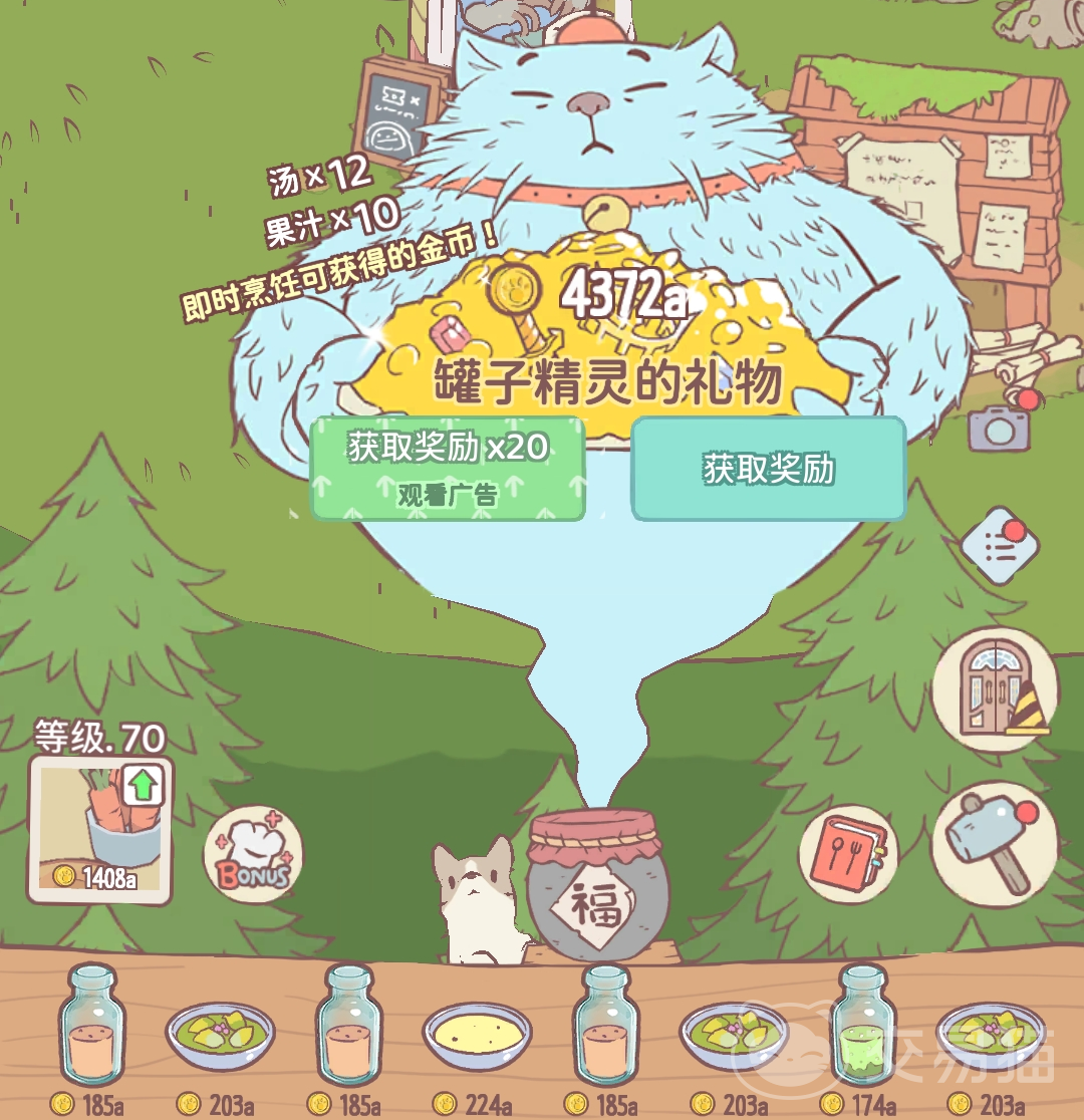 平时猫咪会给小伙伴们做出各种食物进行售卖,换取金币,这就是简单的赚取金币的形式。有的时候还有罐子精灵出现,可以给大家带来金币奖励,像这样免费的福利基本上是不能错过的。