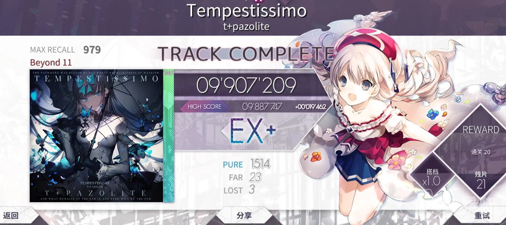 第一个要给大家介绍的就是白姬,白姬作为一个能力十分平衡的角色,玩家们只要氪金购买divided heart曲包就可以进行解锁,她的技能是在玩家游玩一些经典曲目的时候,能额外获得10点的残片。