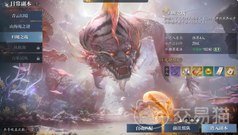 2、副本任务。在游戏中关于副本的内容也很多,有日常副本、山海异兽本和团队副本,玩家加入公会后还会有公会副本。副本就是用来是刷各类法宝和灵器的,在刷副本时建议玩家组队进入,这样能加快通关速度,刷法宝的话也能快一点。